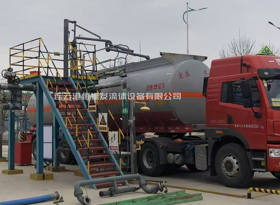 由上可見,液化氣為易燃易爆揮發性介質,需要采用特殊的裝車鶴管進行密閉裝卸操作,通常鶴管型號為AL2543,字母AL代表陸用液體裝卸臂,第一位數字2代表底部裝卸,第二位數字5代表液相管的旋轉接頭數量為5,第三位數字4代表氣相管形式為下翻式,第四位數字3代表液相管形式為上翻式。
